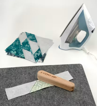 This clapper from The Gypsy Quilter® is made of hardwood. Simply hold in place on top of your freshly pressed seam for a few seconds to draw out the heat and give your seams a nice crisp finish. Pressing can be done with or without steam. This clapper is 7-3/4in long, 1-3/4in at its widest end and 1-1/4in at its narrowest end. It is 1-1/4in thick.