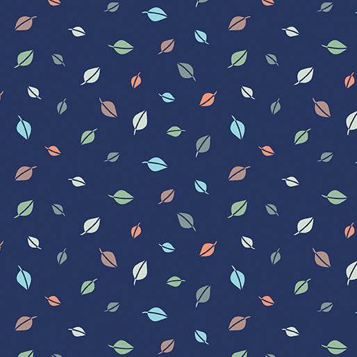 Forest Leaves Flannel - Navy
