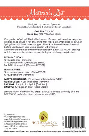 Work on each type of block as its own little section and before you know it your vintage garden will emerge! All the blocks are made with my standard SEW & FLIP METHOD of piecing which means no templates, paper piecing or anything complicated. Size: 23" x 66"