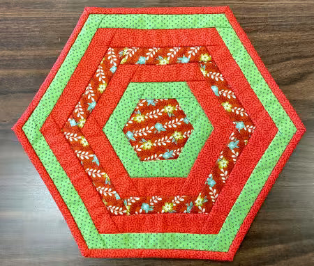 Introducing the Slide & Trim Hexagon Log Cabin - the must-have tool for quilters and crafters alike! This 2 piece acrylic template set makes it easy to create beautiful and intricate hexagon log cabin designs up to 13 1/2" in size. Whether you're a seasoned quilter or just starting out, this tool is perfect for creating stunning quilt blocks, coasters, placemats, and more. Complete with a directions card, this set is the perfect addition to any crafter's toolkit. Don't wait - get yours today and start creating! It’s also a great way to use up scrap fabric. The orange paper template gives the option to add corners to transform the hexagon into a rectangle.