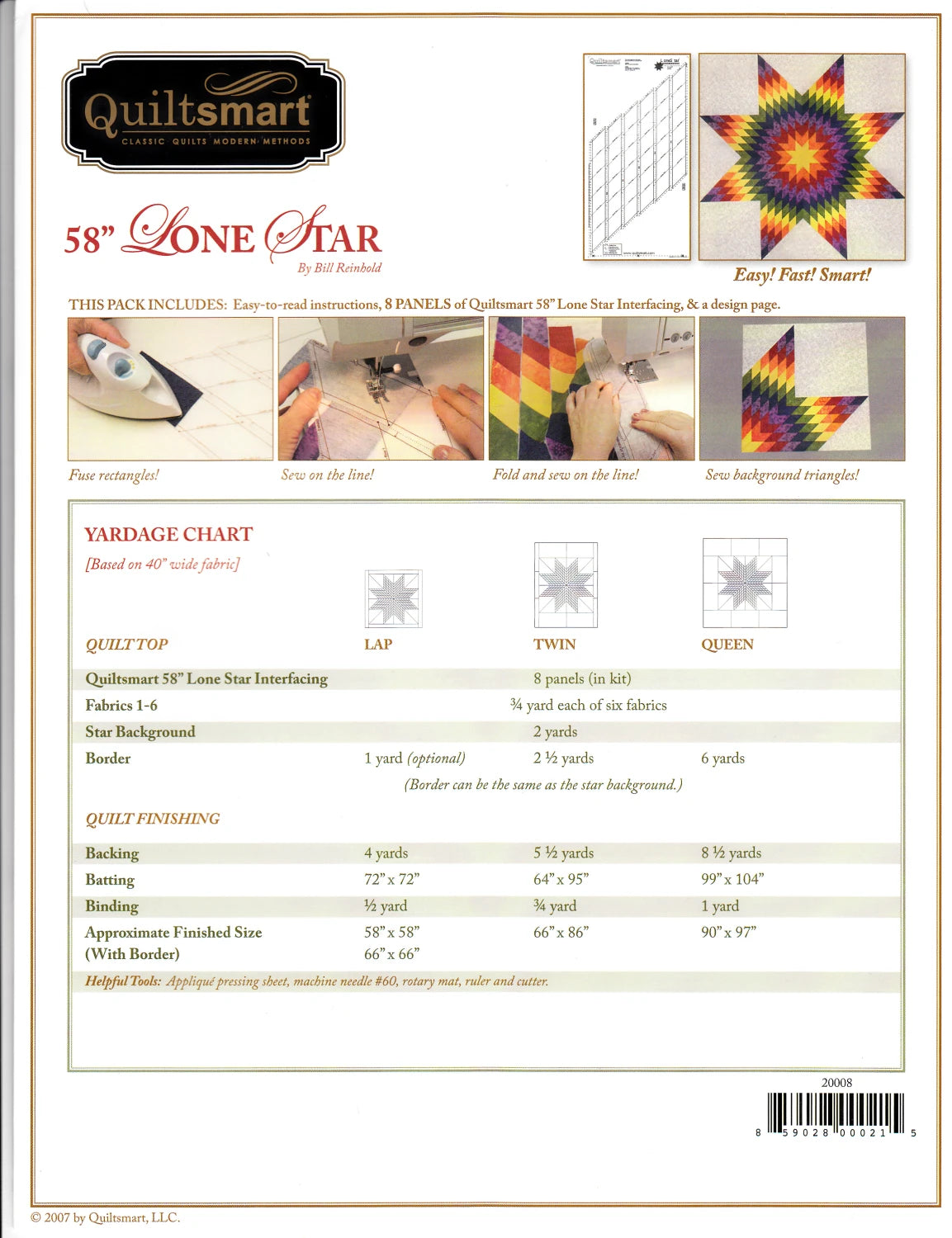 Great projects for the classic quilt of your dreams! Comes with 8 panels of pre-printed interfacing panel of 58in lone star, complete instructions - all packed in a 9in x 12in vinyl zippered project bag!