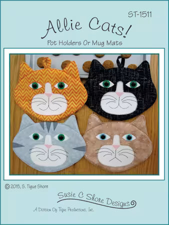 Have a little fun with our Allie Cats! Includes pattern pieces and instructions to sew up some really CUTE Cat Pot Holders or Mug Mats. Super Quick & Easy! Approximate finished size: