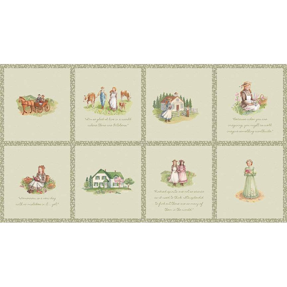 - The Anne of Green Gables collection for Riley Blake Designs is great for quilting, apparel and home decor. This digitally-printed panel features a patchwork of vignettes and text from Anne of Green Gables. Panel size is 24" x 43". Individual squares are approximately 10" x 11".