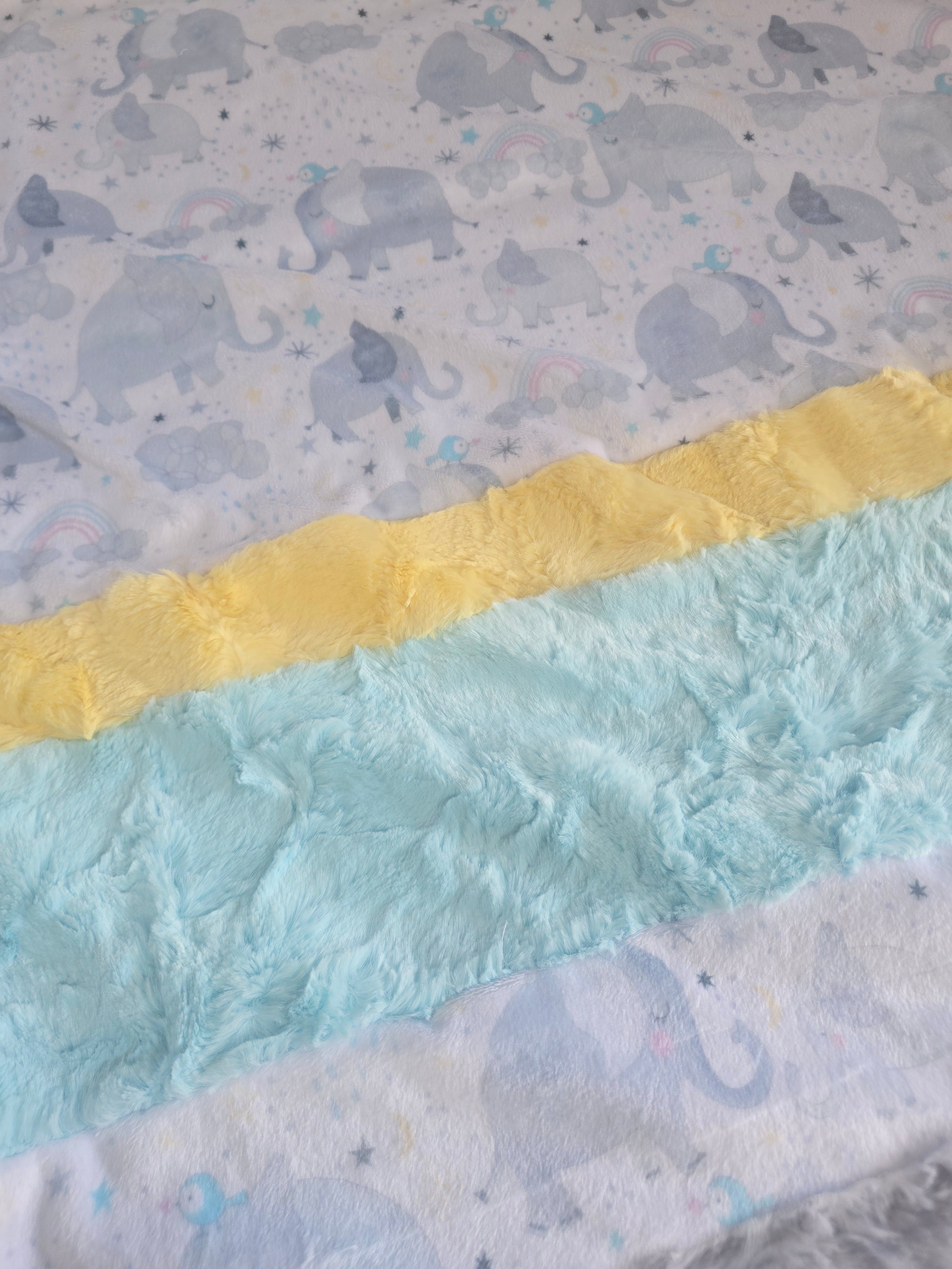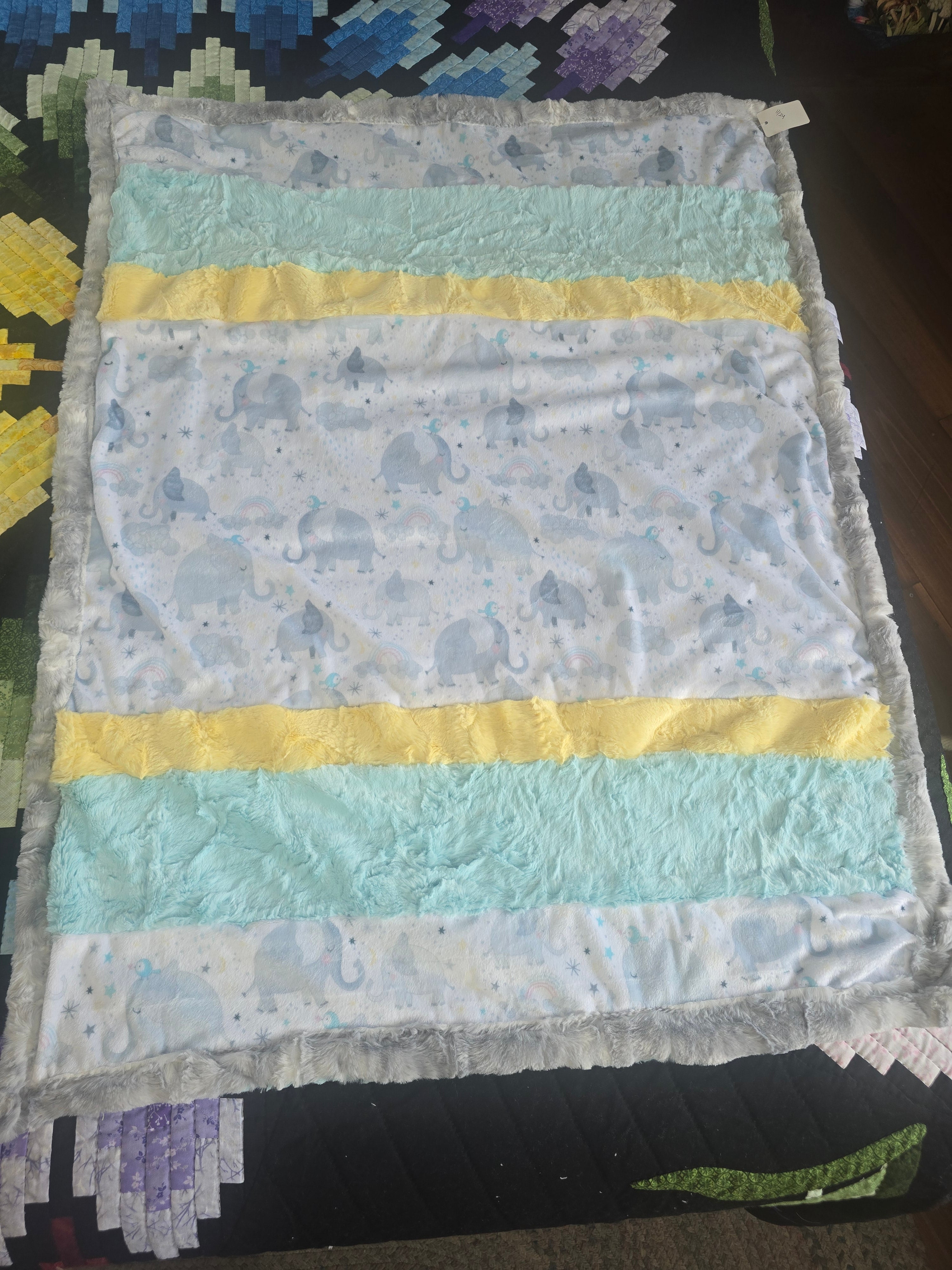 Cuddle Elephant Baby Quilt - Grey/Blue/Yellow