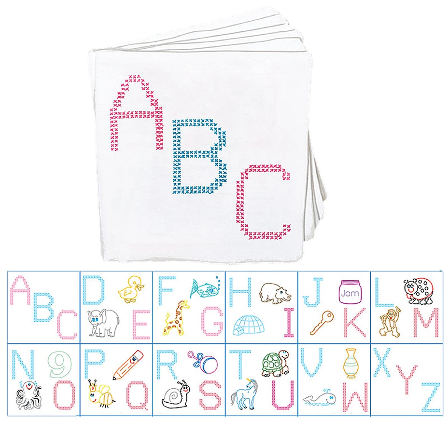 Each package contains Twelve nursery pages of cotton/poly broadcloth. Approximate finished size: 8in x 8in. Additional materials needed to complete: Hoop, needle, floss. Floss requirements included.
