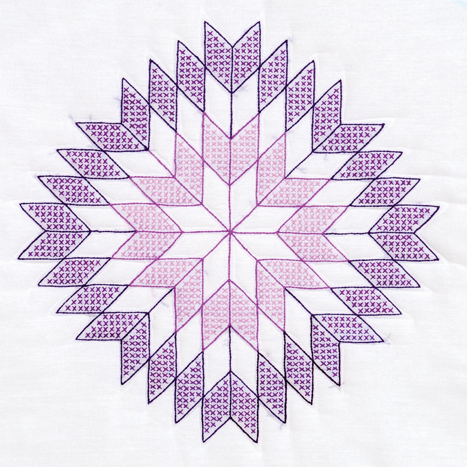 Cross stitch only design, with quilting marks. Each package contains six 18in x 18in quilting blocks.
