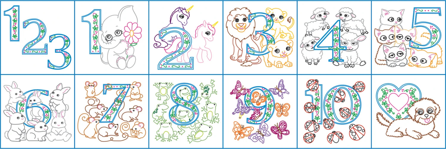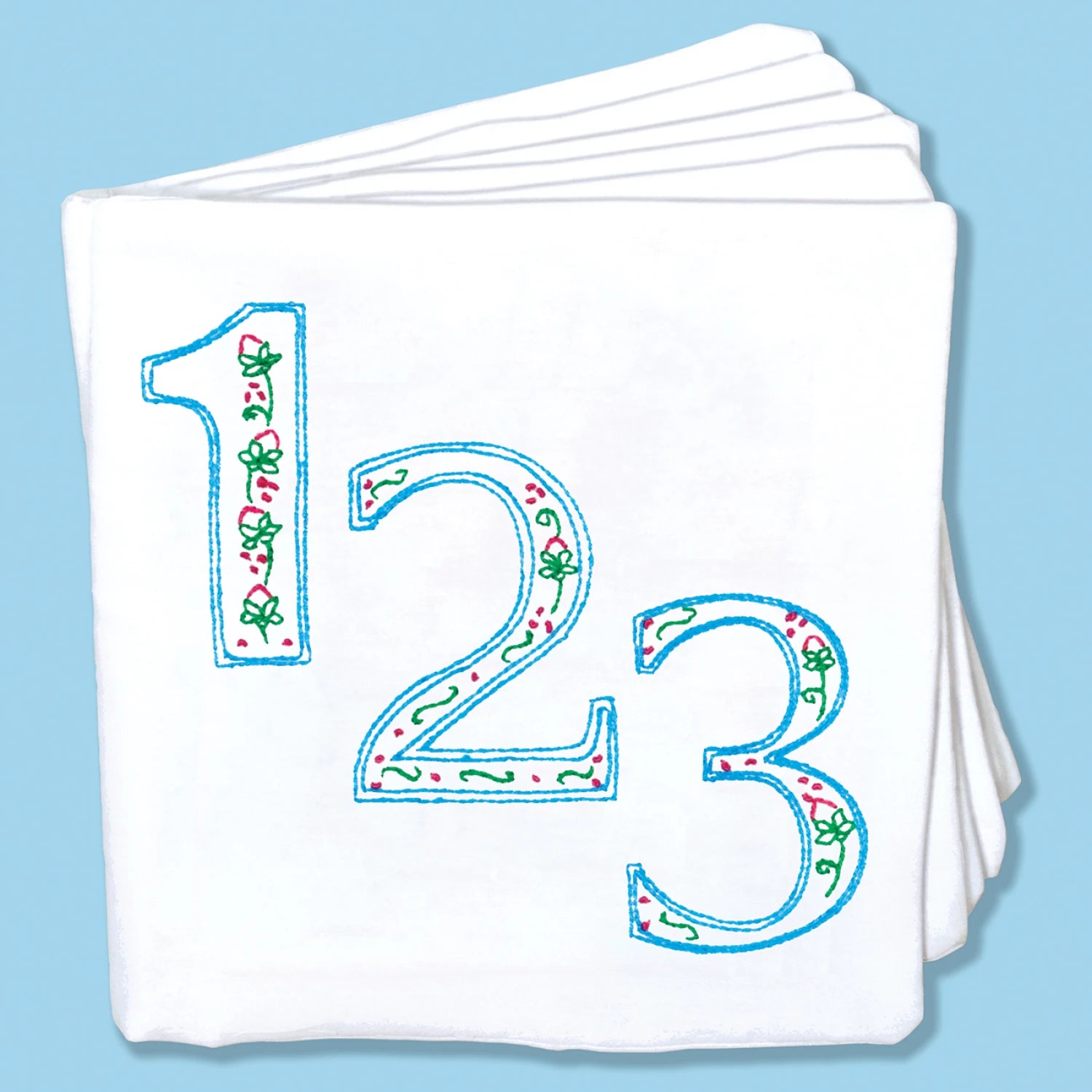 Each package contains Twelve nursery pages of cotton/poly broadcloth. Approximate finished size: 8in x 8in. Additional materials needed to complete: Hoop, needle, floss. Floss requirements included.