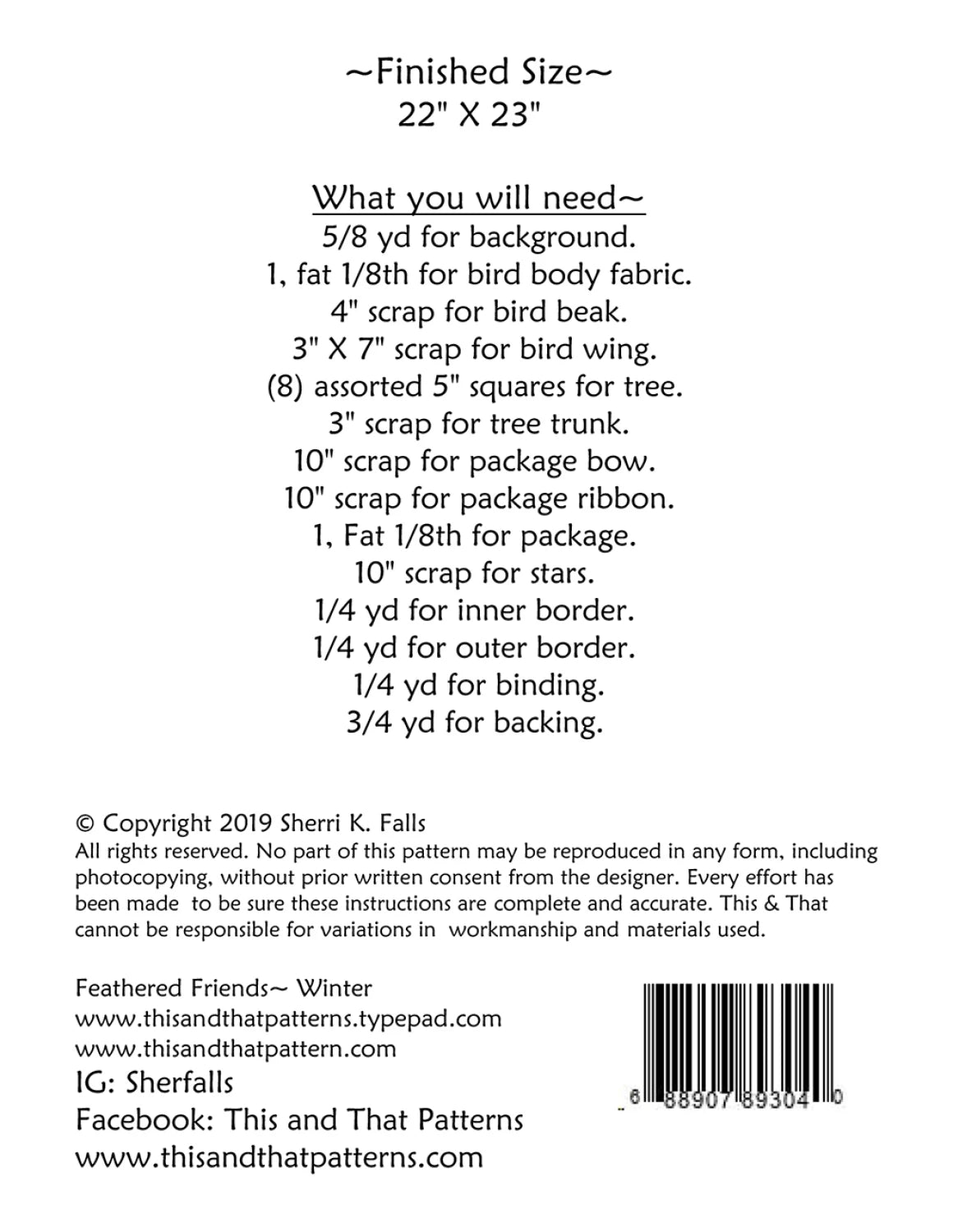Feathered Friends Winter Pattern By Sherri Falls For This and That.