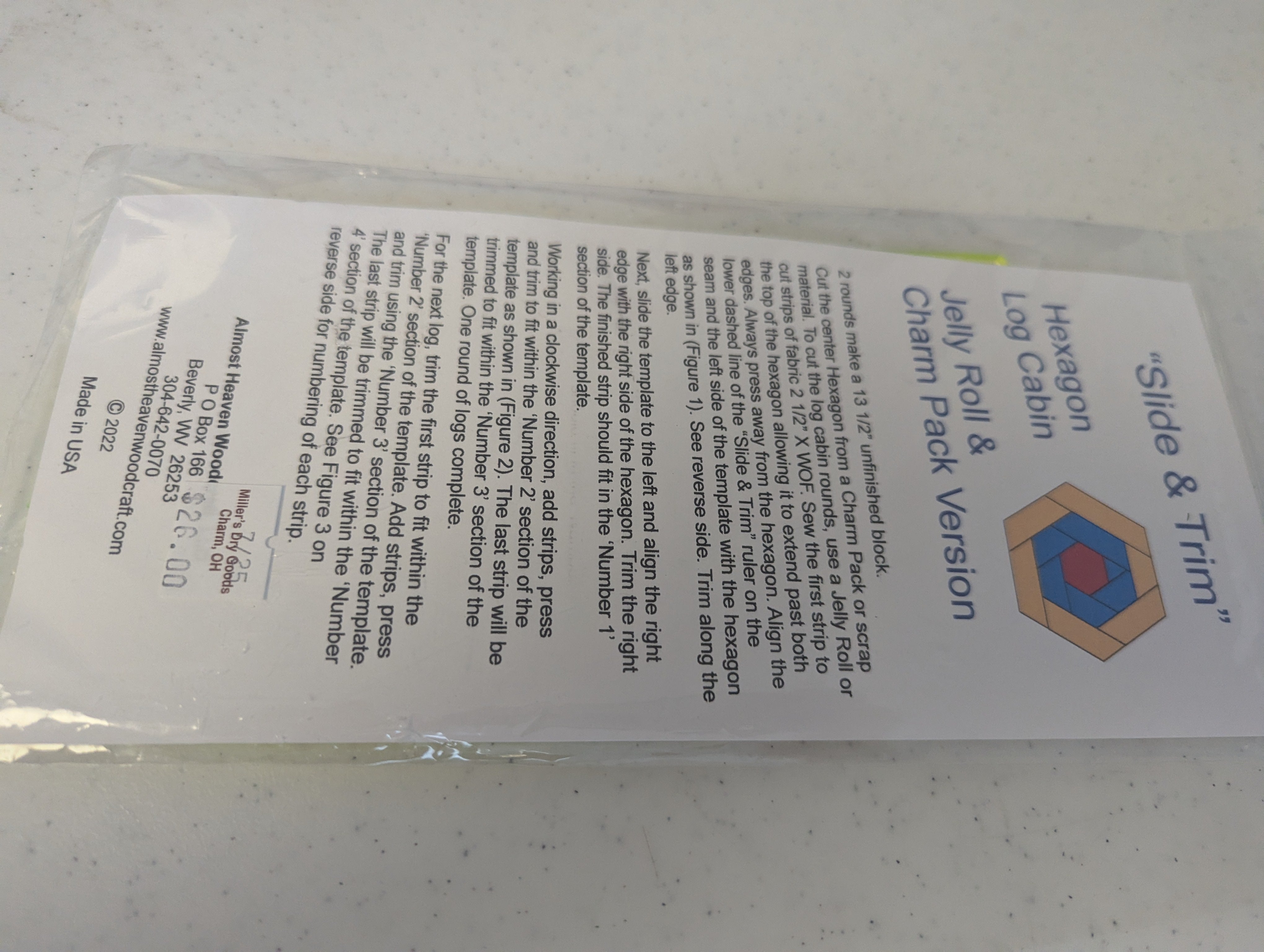 Introducing the Slide & Trim Hexagon Log Cabin - the must-have tool for quilters and crafters alike! This 2 piece acrylic template set makes it easy to create beautiful and intricate hexagon log cabin designs up to 13 1/2" in size. Whether you're a seasoned quilter or just starting out, this tool is perfect for creating stunning quilt blocks, coasters, placemats, and more. Complete with a directions card, this set is the perfect addition to any crafter's toolkit. Don't wait - get yours today and start creating! It’s also a great way to use up scrap fabric.