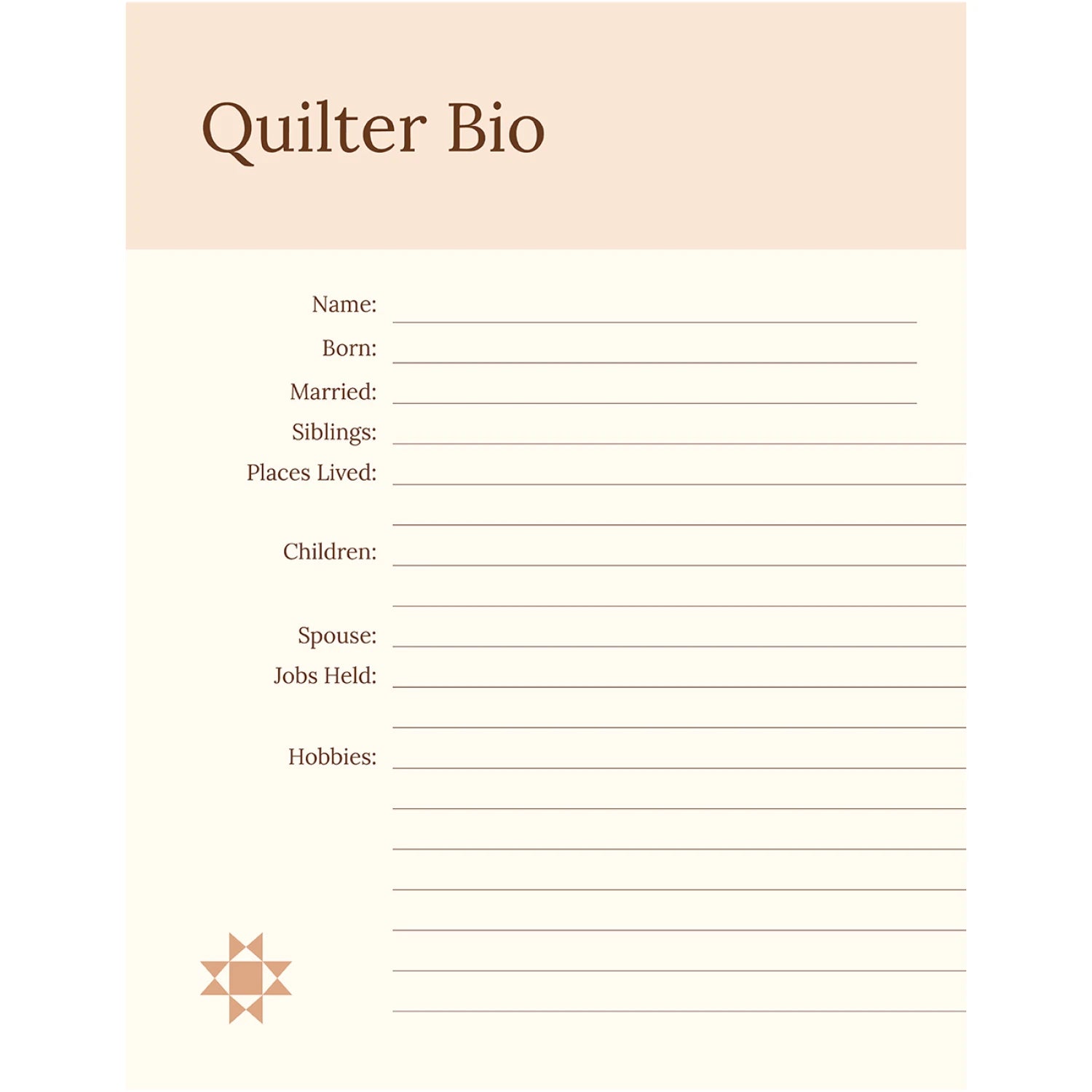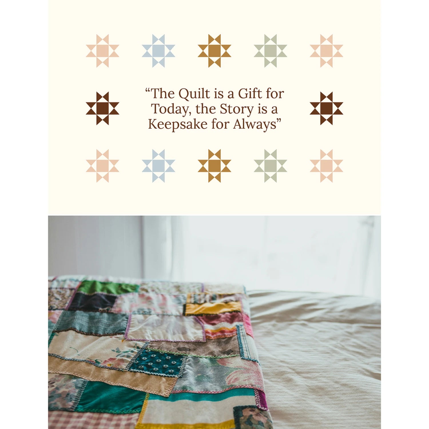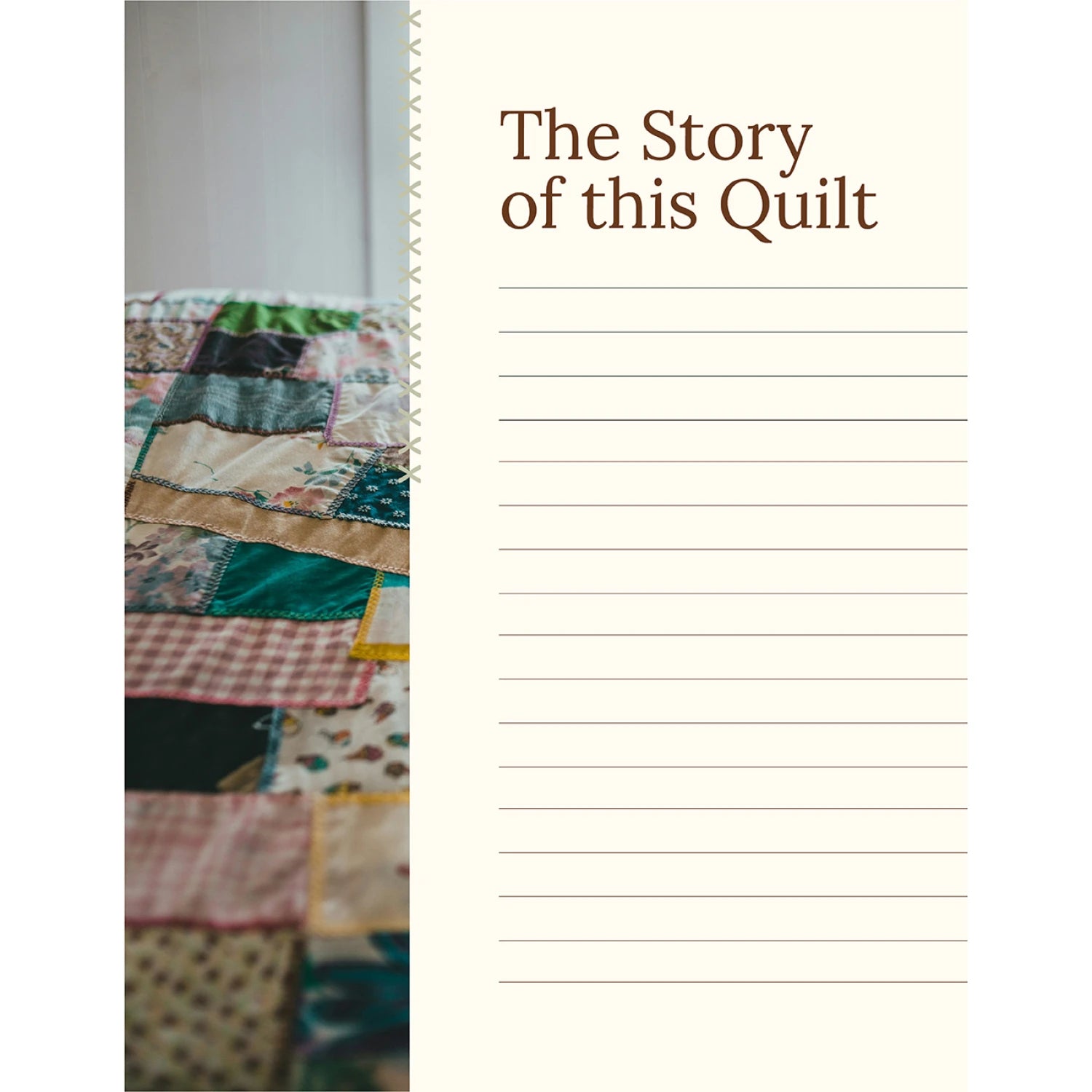 The Quilt Keepsake Book is an heirloom-quality quilting journal that helps makers document the story behind their quilt—its inspiration, process, and meaning. With guided prompts and photo spaces, it strengthens the connection between quilter and recipient and fills a growing market need for quilt storytelling and documentation. A unique, high-demand add-on for quilt shops, classes, and gifting. The Quilt Keepsake Book is completed by the quilter while they are making the quilt. Inside the book the quilter documents the process of making the quilt for the recipient and they also can add photos, fabric swatches, quotes, stories, memorabilia, or anything that the quilter wants to convey to the recipient to express the story behind the quilt and what the recipient means to the quilter. There is also a section for the quilter biography where the quilter can share with the recipient for greater connection. The Quilt Keepsake book is then given along with the quilt to the recipient for a lasting heirloom that tells the story behind that quilt and what the recipient means to the quilter.