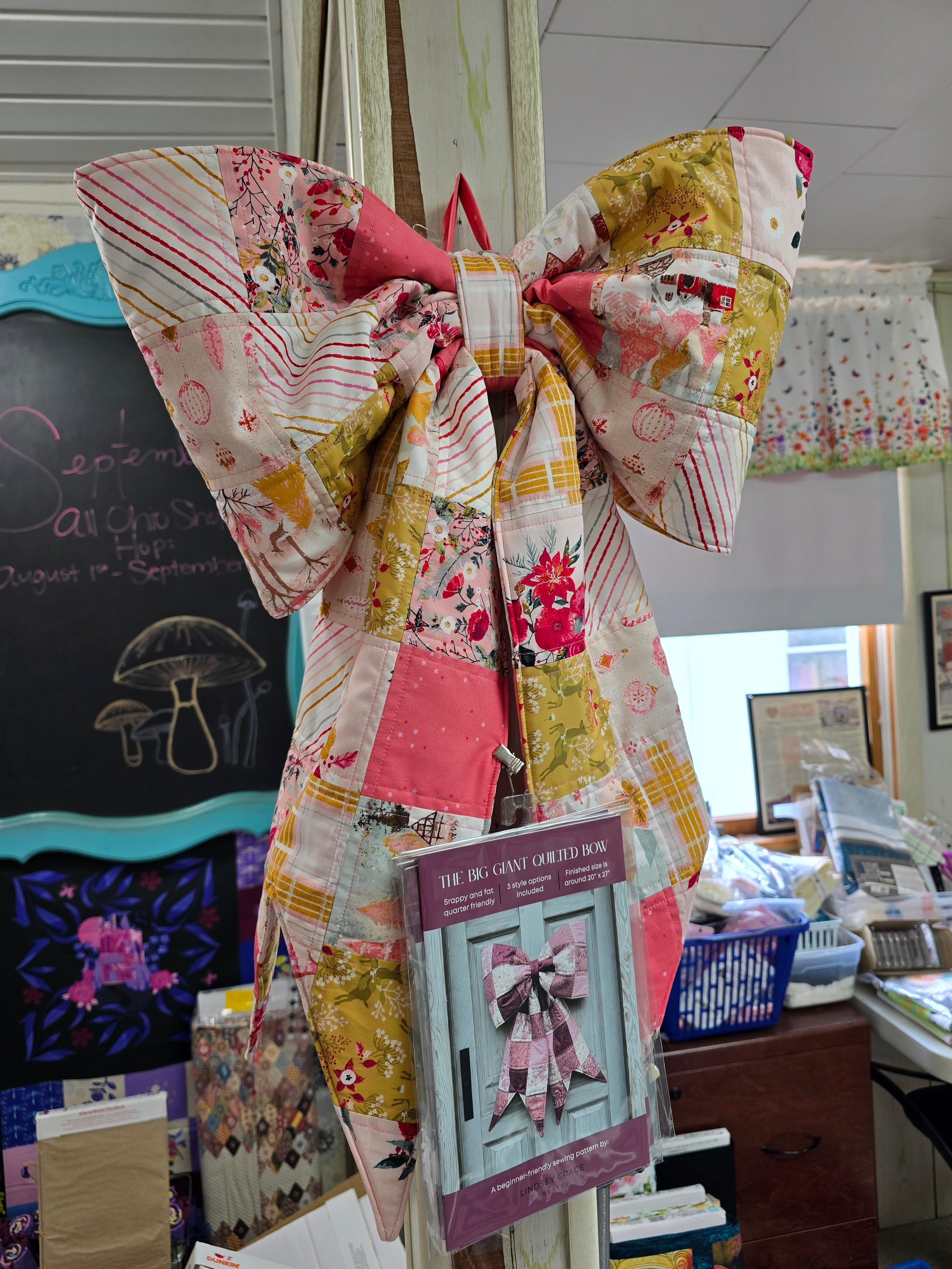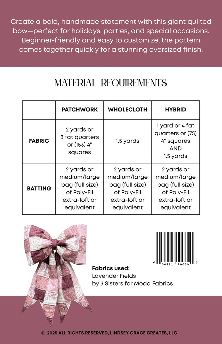 Make a statement with this oversized, quilted bow! Perfect as a festive tree topper, a charming door decoration, or a cute nursery accent, this pattern guides you through creating your very own Big Giant Quilted Bow.