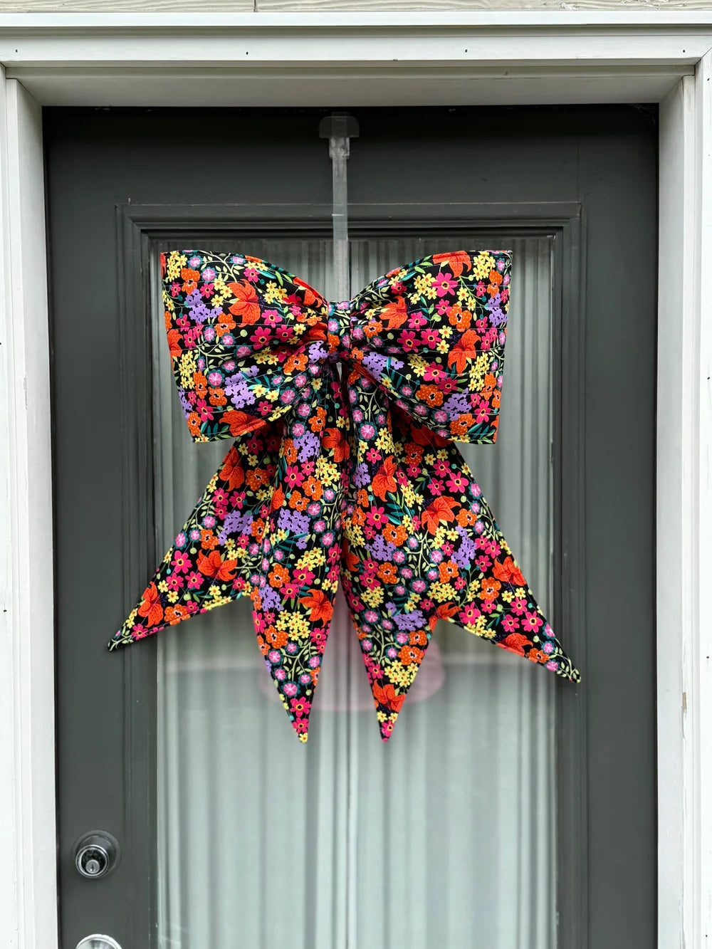 The bow is big, bold, and beautiful—perfect for making a statement! Finished dimensions are approximately 20 inches wide by 27 inches long.